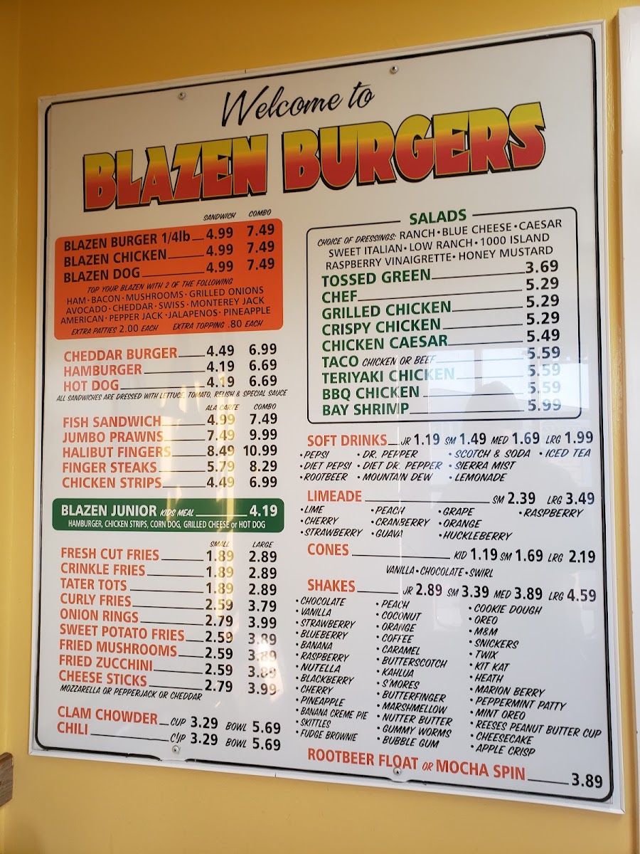Blazen Burgers Menu (Update 2025)