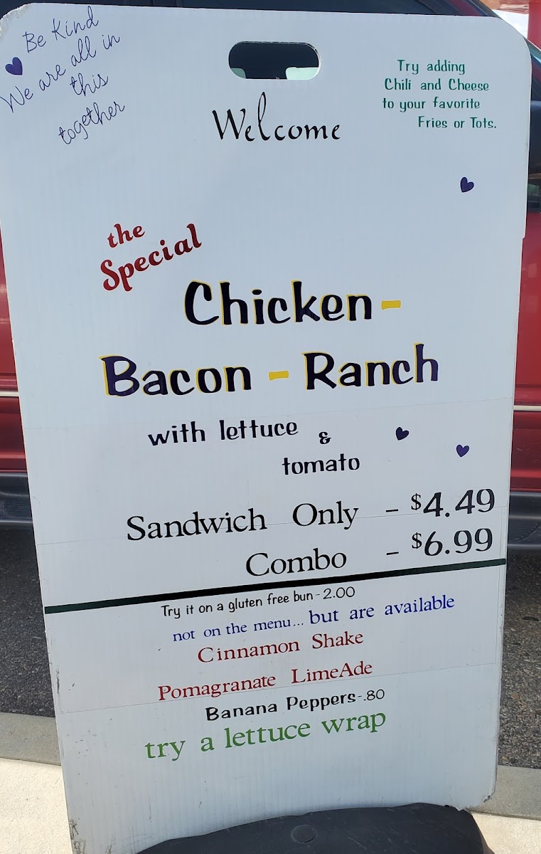 1/4 lb Patty with Cheddar Cheese topped with lettuce, tomato, relish and Special Sauce.
